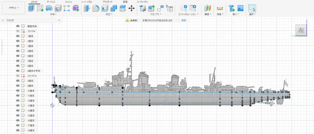 Fusionの画面上で「船体のシルエット」が浮かびあがるデース!